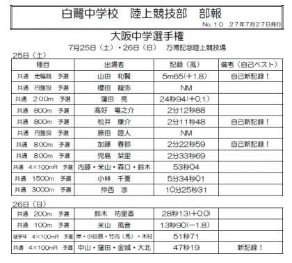 結果は、個人種目12人、リレー3チーム出場し、新記録が4つのみと残念な結果に終わりました。女子800mでは決勝進出まであと0.2秒と迫りましたが、予選順位9番目に終わってしまいました。