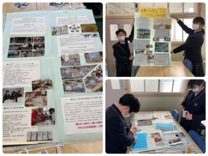 ぼうさい甲子園の表彰式会場で展示される掲示物を防災ALTの2年生で作成しました。模造紙1枚の中に白鷺中学校の防災が伝わる様にレイアウトも工夫しました。