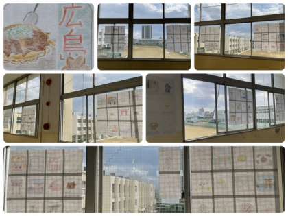 絵と説明で「広島を伝える」55期生の皆さんの力作を掲示しました。世界遺産から美味しい食べ物、消防のマスコットキャラまで見て読んで楽しくて美味しそうで広島へ行く日が待ち遠しくてワクワクします。