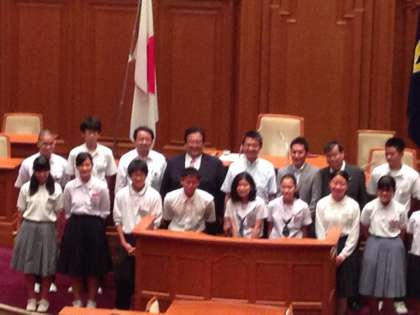 おおさか 子ども市会ー中学生市会ー が終わり、大阪市長をはじめ、市議会議員という本物の政治家さんと記念撮影です。