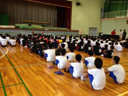 男子バスケットボール部、午後からは天王寺高校と,守口市立樟風中学校との交流試合をしました。 全ての試合が終わり、只今、閉会式です。