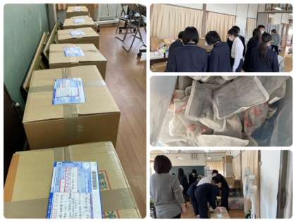 昨年の11月から回収を始めた使用済み使い捨てカイロの荷作りを元気アップ隊、防災ALT、PTA保健委員会の皆様と協働で2/27(月)に行いました。北海道、兵庫県から学校に送ってくださったり保護者、地域の皆様にもご協力いただいたおかげでなんと約370kgも集まりました。箱詰めすると段ボール箱23個!!