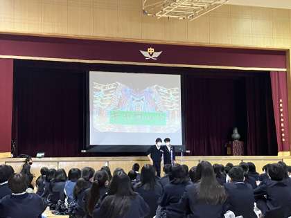 4時間目にクラス内で予選を行い、各クラスの上位2組(計10組)が5・6時間目に全体の前で発表しました。