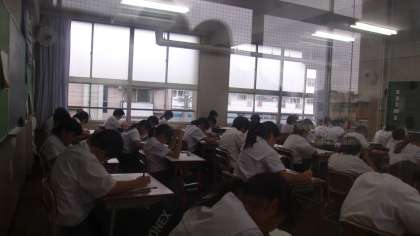 夏休みの学習の成果を発揮し、真剣な眼差しで