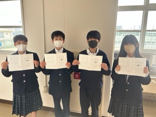放送で行ったため、2年1組、1年1組の委員長に代表で修了証を受け取ってもらいました。