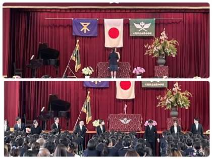 4/5(水)57期生の入学式が行われました。中学校の門をくぐる57期生の輝く笑顔がとても素敵でした!
