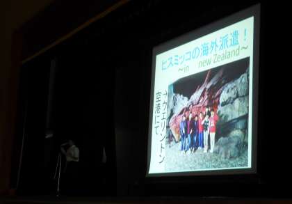 ニュージーランドの学校の様子や、ホストファミリーなどをスライドで紹介してくれました。