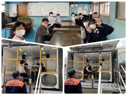 授業後は東住吉消防署の皆様にお世話になり起震車の体験をさせていただきました。ありがとうございました。