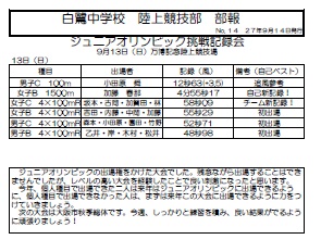 陸上部 部報 ジュニアオリンピック挑戦記録会