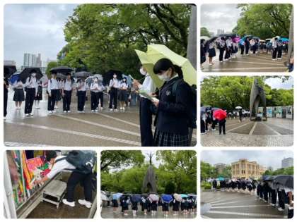 「原爆の子の像」の前で各クラスで平和セレモニーを行いました。