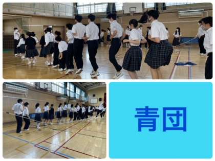 今日の団集会は「大縄跳び大会」でした。初めての班別の活動でしたが気持ちを一つ「せ〜ので」‥