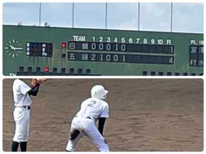 3年生の黒岡君の3ベースヒットから1点返しました。6回表の攻撃も頑張っています!