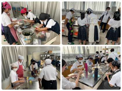 防災ALTと家庭科部は「災害時の食」をテーマにコラボしています。本日はサバイバルクッキングに挑戦。各家庭から持ち寄った保存食品を使って短時間で調理‥難しい状況でしたが色々な料理!!が出来上がりました。「美味しい」の声がたくさん聞こえてきたので安心しました〜
