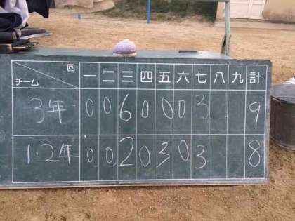 7回表に追加点を取り、点差を広げる3年生チーム。