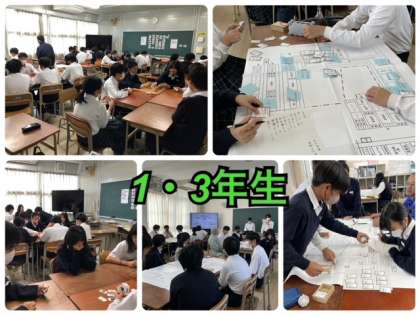 3年生ー宮城県立石巻西高等学校の元校長の齋藤幸男先生の避難所の実際についてお話しを聞きました。その後、地域の防災リーダーさんにも参加していただき避難所HUGに取り組みました。委員長さんに避難所HUGの授業の進行を任せていましたがクラスのみんなの協力もありスムーズに実施できました。地域の皆様からのアドバイスはとてもありがたかったです。
