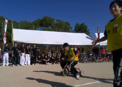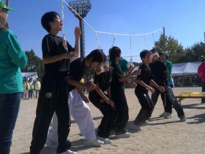 パン食い競争・徒競走・走り縄跳び・三輪車、とバラエティー豊かな種目に地域の方々や小学生と協力して、見事1位になることが出来ました!