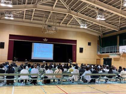 11月6日に第二回進路説明会が 開催されました。 進路委員会では受付をさせていただきました。悪天候の中でしたが、たくさんの 保護者の方に御参加いただきました。 入試までの詳しい流れを説明して頂き、とても参考になりました。保護者のみなさんもとても真剣に聞かれていました。 3年生は、これから進路懇談会があり進路を考える大事な時期になります。 3年生、保護者の皆さんは体調管理に気をつけて受験に向けて進んでいってもらいたいです。
