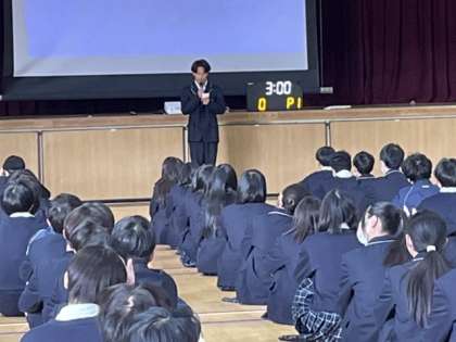 学年集会で委員長から卒業式の歌、アンケート結果の発表がありました。55期生全員で取り組む最後の合唱は「正解」です。
