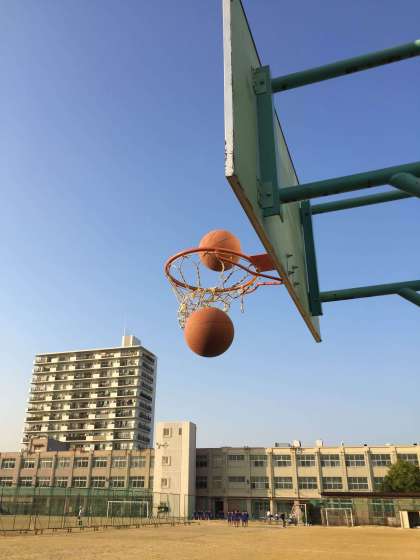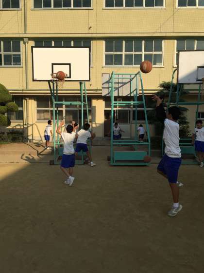 今日は外練の日ですが、外周の後グラウンドのリングでシュート練習を行いました。