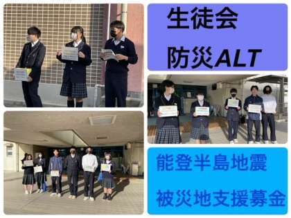 防災ALTと生徒会は、能登半島地震被災地支援募金活動を行っています。