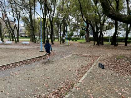 前日からの雨でグラウンドが使えなかったので、白鷺公園で練習しました。