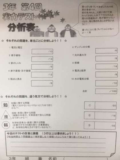 理科ではしっかりとテスト後の反省・分析を行います!!