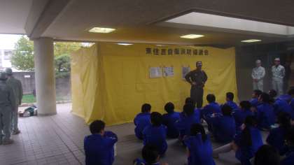 2年生土曜授業(防災学習) 『煙体験』の様子です。
