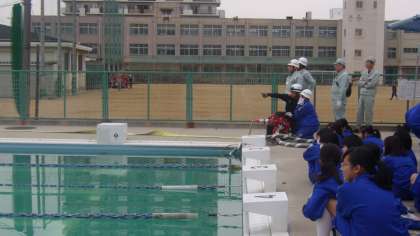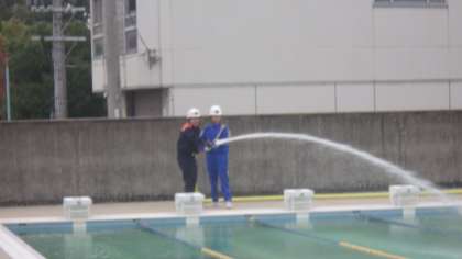 2年生・土曜授業(防災学習) 『可搬式ポンプ体験』の様子です。