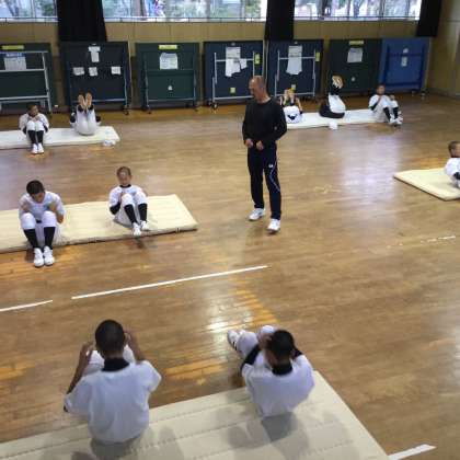 野球部は廊下で体幹のトレーニングや小体育館でマットを使ったトレーニングをしています!