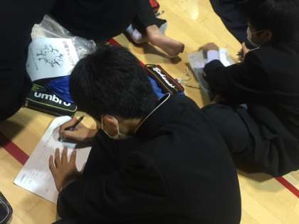 出前授業、日清食品創業者の安藤百福氏や江崎グリコ創業者の江崎利一氏を例に、企業家たちの幼少期から成功するまでの事績や、人間としてどのように成長、成功したかなどを学んでいます。