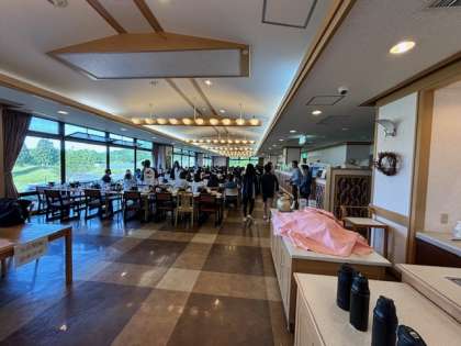 朝食です。今日も楽しいプログラムがたくさんあります。しっかりいただきます!全員元気です。