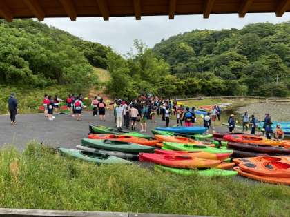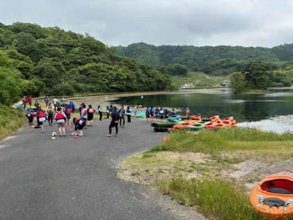 会場に到着。準備運動をしてパドルの使い方の練習をしました。