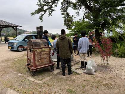 これからタケノコ掘りに行きます! ピザ釜も素敵です。