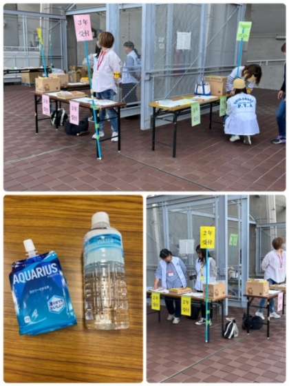 PTAから生徒たちへ熱中症対策として、ペットボトルの水と冷凍のパウチを支援させていただきました。冷凍パウチでアイシングしたり、のどを潤している姿などを見ていると、少しでも生徒たちのサポートが出来たのではないかと思っております。