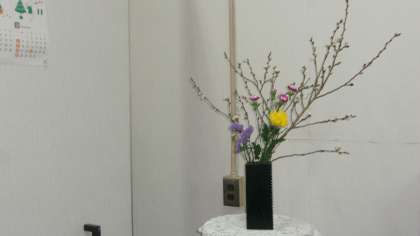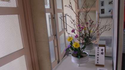 花材は、「寒桜」・「菊」・「カーネーション」・