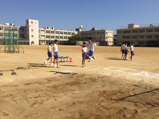 授業が始まるまでに、砂場もちゃんと掘ってならしてフワフワな状態が整っており、踏み切り位置やフォームについてもお互いに教え合うこともできていたので、やるなぁー!と感心しました(^-^)