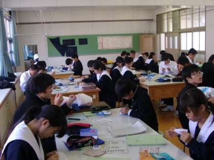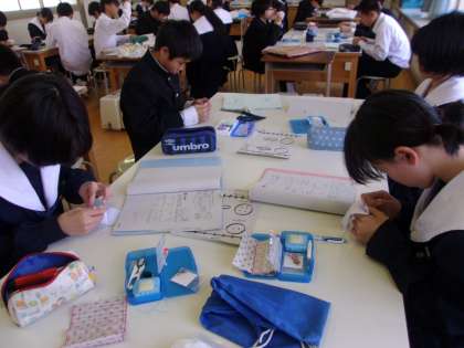 玉結び、玉留め、なみ縫い、まつり縫い、ボタンつけが丁寧にできるように練習しています。特にボタンつけは、大人になってから「学生の時にきちんと学んでおけばよかった」と思うことが多いようなので、技術を正確に習得できるよう、一生懸命頑張っています!