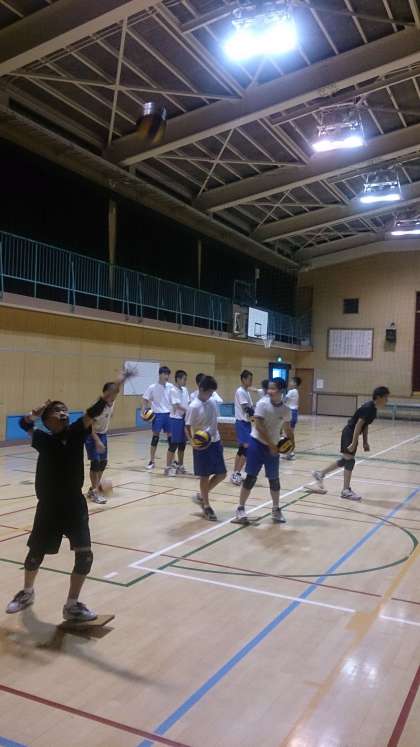 スパイクの強化練習のひとつです。(腰を切り替えた練習)府の新人大会までに強化できるか?…メンバーのみんな、工夫しながら練習してます。