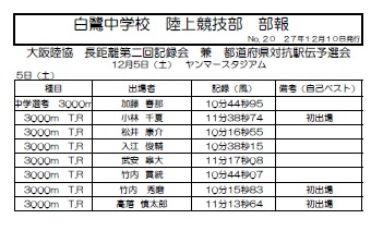 陸上部 部報 大阪陸協 長距離第2回記録会兼都道府県対抗駅伝予選会