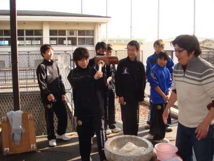 12月13日、テコンドー部で杭全五丁目会の餅つき大会に参加させて頂きました!