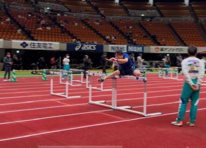 大阪城ホールで開催される日本室内陸上の前日練習に来ています。
