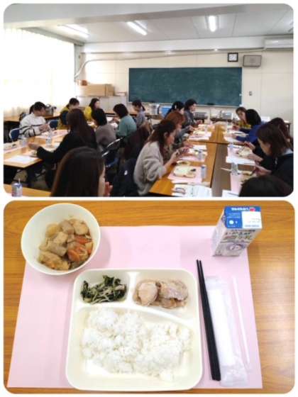 試食後は保健室の成田先生より、保健室の利用状況、生徒たちの様子、感染症予防について、朝食の大切さ等のお話しを伺いました。