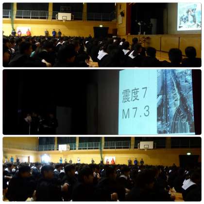 今日は全校集会で当時の様子、そして今に振り返り、見つめ直しました。
