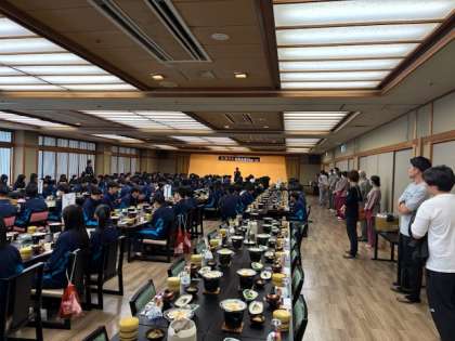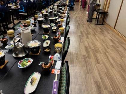 朝食です蒜山高原での体験活動に備えてしっかりいただきます。2日目朝、体調不良者ゼロです!