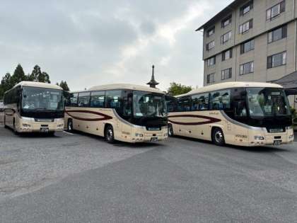 蒜山高原に向けて体験コースのグループごとに分かれてバスが発車しました。予定通りです。