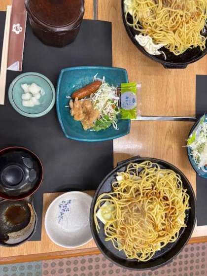 お昼ご飯はご当地グルメの蒜山焼きそば。