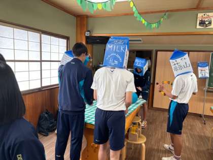 牛乳パックを被って、タンバリンを振ってます! 大丈夫でしょうか?