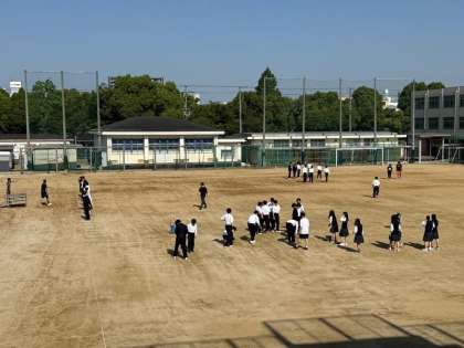 今日は有志の生徒たちが、朝からグラウンドの石拾いをしてくれています。