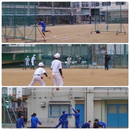 陸上部、野球部、男子バスケットボール部の練習風景です。