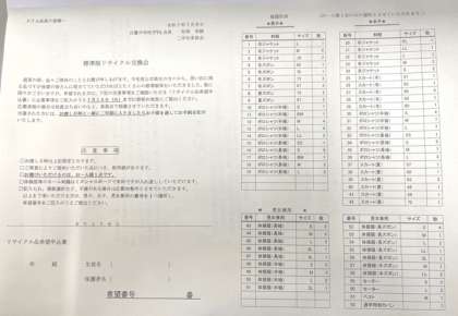 7月10日(木)皆様からお譲りいただいた標準服等のリサイクルについての希望申込書を配布いたしました。